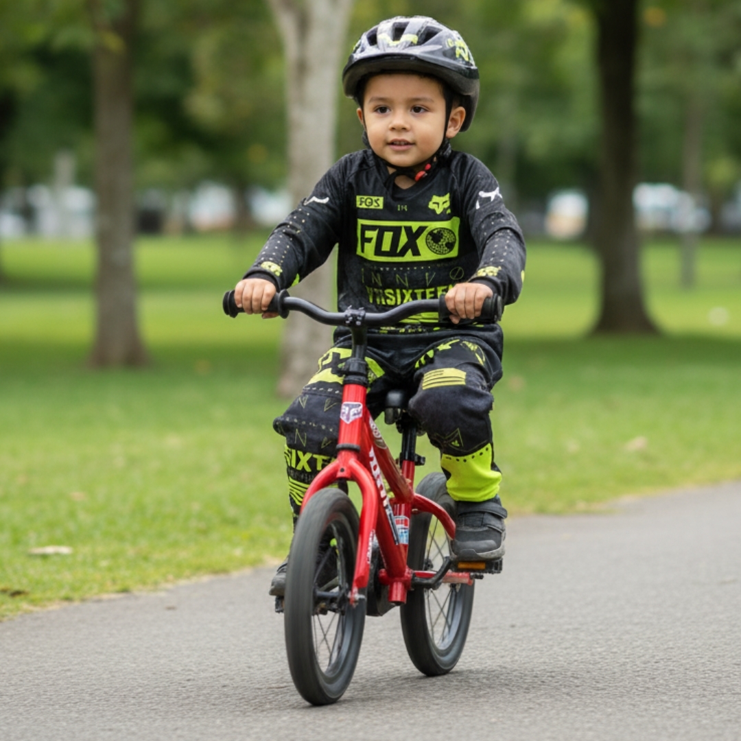 🔥 Equipe a sus pequeños campeones con un conjunto que combina estilo y seguridad en cada salida. ¡Haga de cada ruta una gran aventura! 🌟🚴