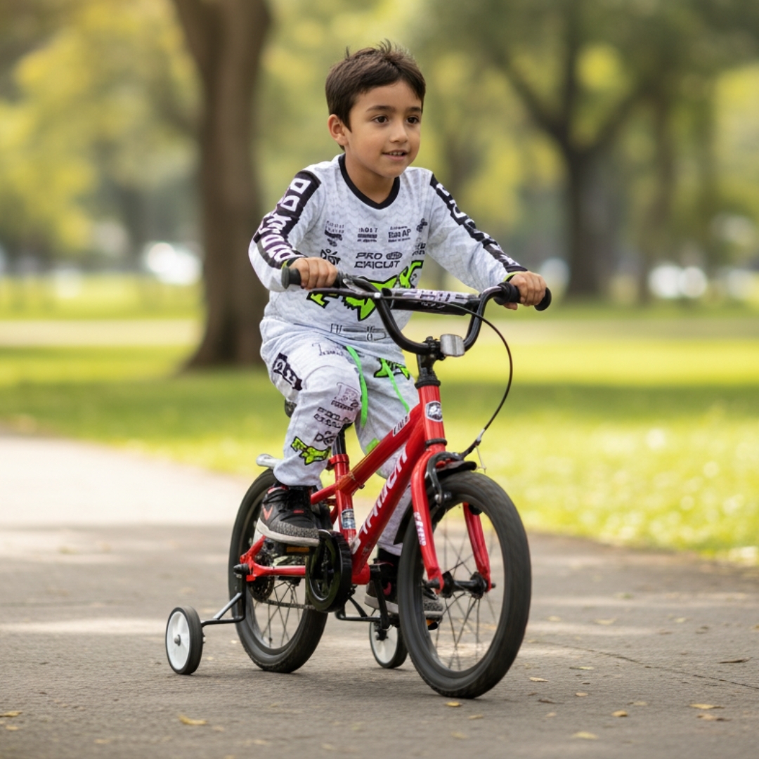 🔥 Equipe a sus pequeños campeones con un conjunto que combina estilo y seguridad en cada salida. ¡Haga de cada ruta una gran aventura! 🌟🚴