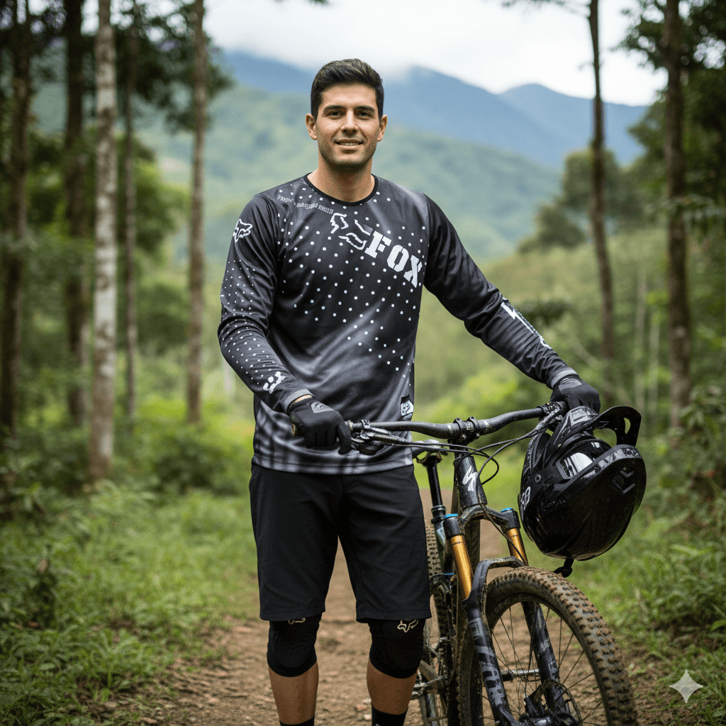 El Jersey Enduro está diseñado para quienes buscan verse bien y rodar con máxima confianza. Su tela poli-algodón ligera, transpirable y de secado rápido mantiene el cuerpo fresco y cómodo en todo momento. 🌬️🚴‍♂️